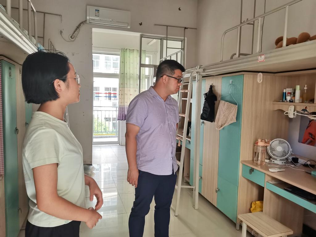 为进一步做好疫情防控常态化校园安全工作,加强学生宿舍安全管理,保证暑期留校学生的正常学习、生活安全。7月29日,全科医学院党委副书记潘涛带领学工办辅导员深入学生宿舍开展安全检查。