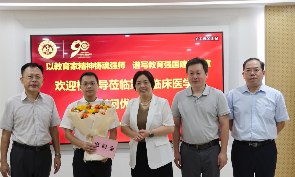 在第41个教师节来临之际,为弘扬中华民族尊师重教优良传统,传递学校对教师的深切关怀与节日祝福,校领导马献力、曾小云、陈旭、李清华、韦政权、覃克强带相关部门负责人开展教师节慰问活动,走访慰问了16名辛勤耕耘在教学、科研、临床一线的教师代表和离退休教师代表,向他们致以节日的诚挚问候和崇高敬意,并通过他们向全校教师致以节日问候与美好祝福。