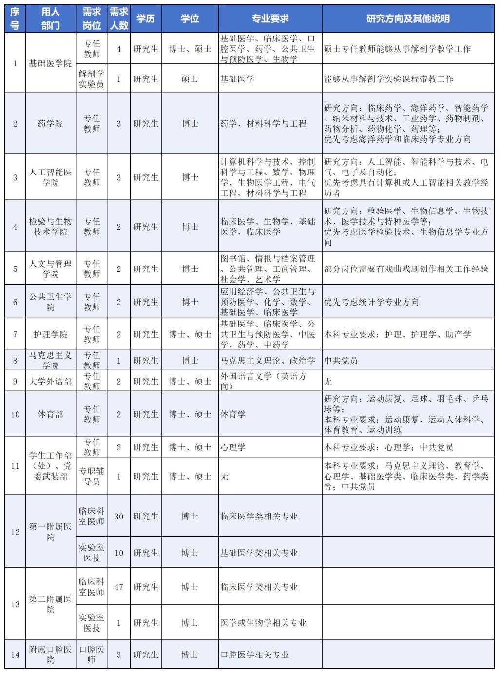 注:第一附属医院、第二附属医院、附属口腔医院的人才层次及条件根据各医院相关规定执行。