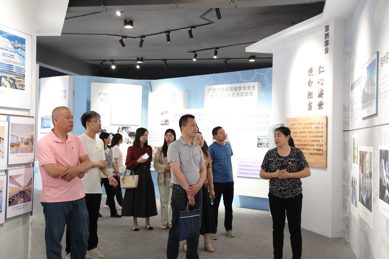 座谈会后,桂林市发改委第七党支部党员一行参观了学校发展历程与办学成果展示馆,深入了解学校在教学、科研、社会服务等方面取得的突出成就。参观过程中,双方党员结合各自工作实际,就如何推动党建与业务深度融合进行了经验分享,进一步拓宽了工作思路。