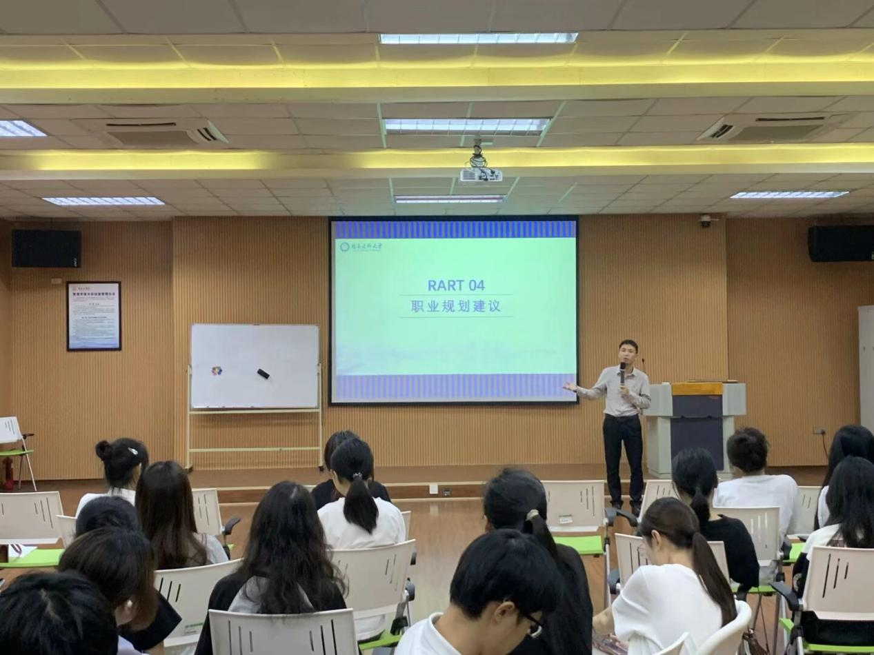 为帮助市场营销(医药方向)专业学生深入了解行业前景、规划职业发展路径,近日,由人文与管理学院与杭州中美华东制药有限公司共建“华东班”在大学生活动中心210教室举办“洞见未来,规划人生”职业发展主题班会。活动邀请中美华东制药有限公司大区经理张琨、赵凤美担任主讲嘉宾,与全体同学共话职业成长