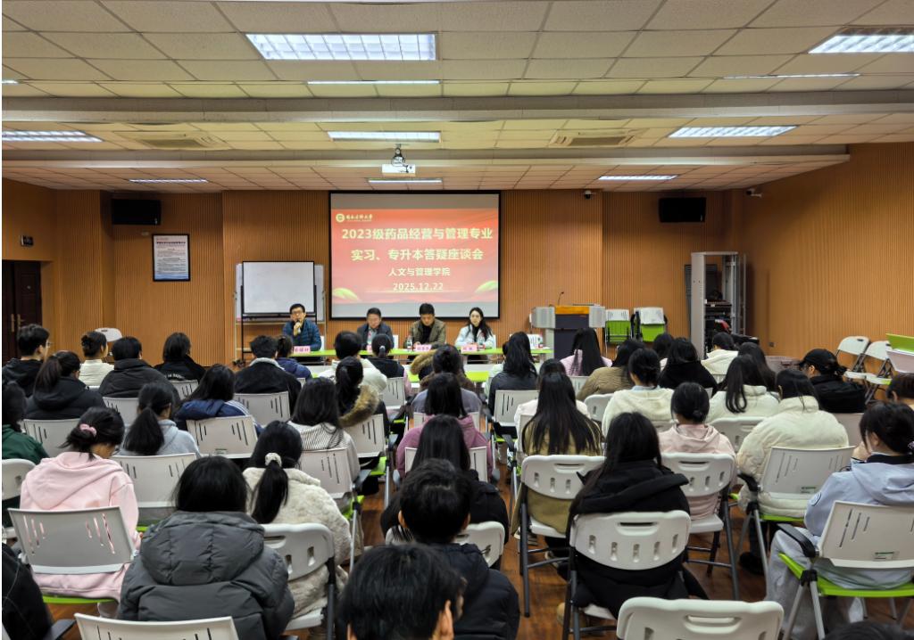 为扎实推进学风建设月活动,切实解决药品经营与管理专业高职学生在实习与升本过程中面临的困惑,引导学生明确发展方向,12月22日,人文与管理学院在临桂校区大学生活动中心210室组织召开2023级药品经营与管理专业高职生实习与升本专题座谈会。学院院长石武祥、党委副书记、纪委书记杨攀攀、副院长苗耀祥、副院长刘敏,2023级药品经营与管理专业全体高职学生及辅导员共同参会。
