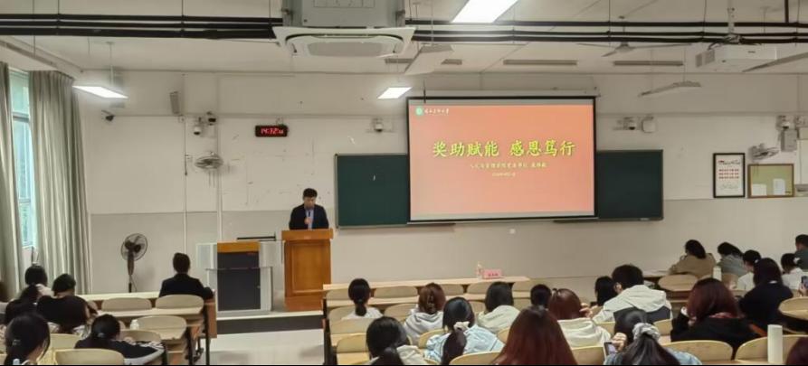 2026年4月21日,我院在崇德南楼S103举办“奖助赋能・感恩笃行”奖学金颁奖仪式暨获奖受助学生集体谈心活动与“新征程,青年说”领航报告活动。学院党委书记庞伟毅教授出席并讲话,200余名师生参加。