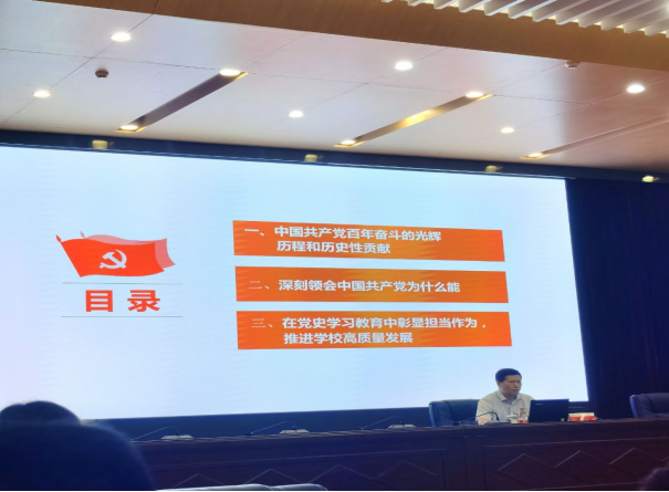 报告会上,张志勇书记以“中国共产党为什么能”作为专题报告会的主题,从全面了解“中国共产党百年奋斗的光辉历程和历史性贡献”、“深刻领会中国共产党为什么能”、“在党史学习教育中彰显担当作为,推进学校高质量发展”三个方面,通过翔实的数据和生动的语言,给大家上了一堂精彩的党史教育课。他通过回顾中国共产党百年奋斗的光辉历程与历史性贡献,深刻阐述了中国共产党带领中国人民取得非凡成就的关键所在,提出了要在党史学习教育中彰显担当作为、推进学校高质量发展的具体要求。在全党开展党史学习教育,这是以习近平同志为核心的党中央做出的一项重大决策,通过学党史、悟思想、办实事、开新局,切实做到在“学史力行”中守初心担使命,彰显担当作为,努力推动学校内涵式高质量发展,努力办好人民满意的高等教育,为实现中华民族伟大复兴而不懈奋斗!