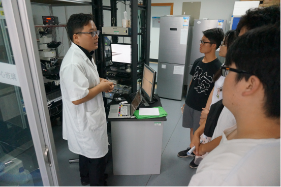 在实验室参观环节,广西脑与认知神经科学重点实验室的工作人员向大家介绍了实验室的基本情况,并在实验室参观过程中详细讲述了流式细胞仪、膜片钳电生理记录系统等大型仪器的工作原理和操作流程。