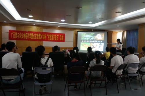 活动期间,广西脑与认知神经科学重点实验室常务副主任谭洁副教授通过通俗易懂的科普讲座为大家讲解了脑科学的发展历史,以及脑科学研究中的常用模式生物。