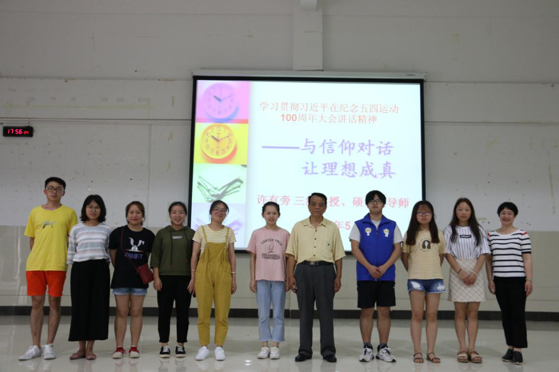 讲座由学校离退休许有旁教授担任主题宣讲。他从大学生应“坚持什么信仰、树立什么样的信仰、如何把信仰与现实相结合”等问题展开,分析大学生学习动力不足的问题和信仰的现状。对信仰的力量进行了诠释和解读,对大学生如何树立马克思主义信仰进行了讲解,勉励同学们学党史知党情跟党走。