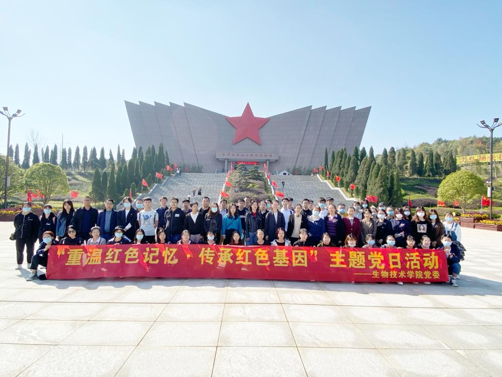 为巩固“不忘初心、牢记使命”主题教育成果,深入开展革命传统教育、爱国主义教育,11月14日,生物技术学院党委组织全体师生党员、党外代表人士、新引进博士、归国教师共70余人赴全州红军长征湘江战役纪念园、湘江大坪渡口等红色教育基地,开展“重温红色记忆,传承红色基因”主题党日活动。