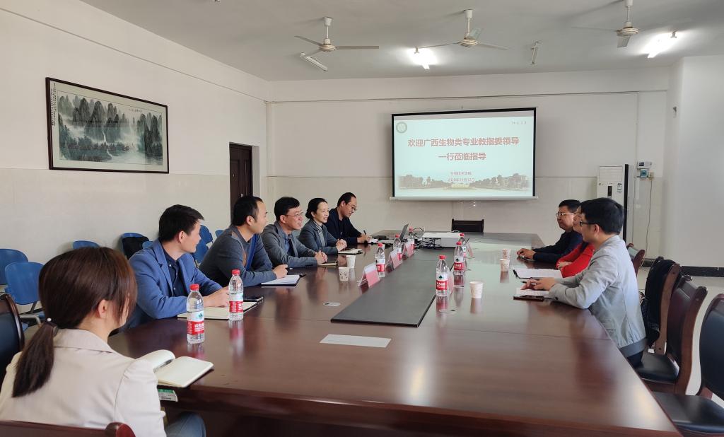 为回顾总结广西高校生物类专业在一流专业和一流课程申报建设方面的成果,提前谋划下一轮申报工作,11月12日下午,广西生物科学与生物工程类专业教学指导委员会专家组何英姿教授、叶云教授、廖覃敏总经理一行3人到我校生物技术学院调研。我校教育教学发展中心主任白玲、教务处副处长彭小红、生物技术学院院长孙立元及专业建设骨干教师参加会议。