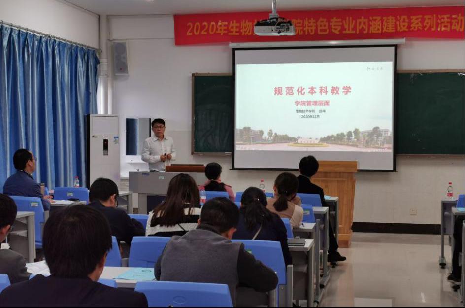 为加强教学规范化管理,推动一流专业建设,11月7日上午,生物技术学院在临桂校区生技楼举办规范化教学及特色专业建设研讨会,这是生物技术学院特色专业内涵建设系列活动的第一个活动。生物技术学院党政班子及全体专任教师参加了研讨会。