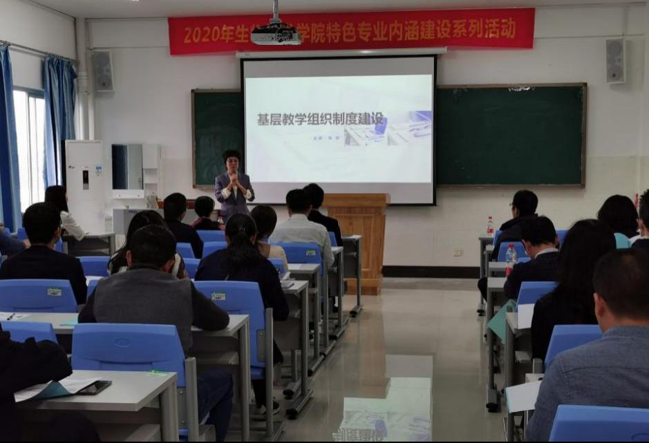 研讨会上,生物化学教研室主任朱华作了题为《关于基层教学组织规范化管理》的报告,生物技术学院副院长舒伟作了《关于二级学院(专业)规范化本科教学》的报告,生物技术学院副院长武家才作了《生物医学工程学位点研究生规范化教学管理》的报告,实验教学中心副主任付灿作了《基于OBE理念的一流专业教学体系建设》的报告,实验室安全委员会主任李勇作了《教学、科研实验室危化品安全管理与事故应急处置》的报告。与会教师对规范化教学的相关要求进行了热烈的讨论,对专业内涵建设进行了充分的交流。