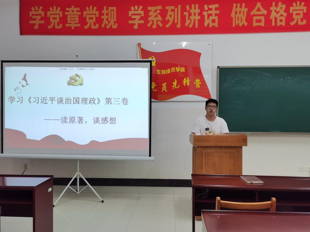 接着,为进一步深入学习《习近平谈治国理政》第三卷,学生党员通过诵读《习近平谈治国理政》第三卷原著,结合所读章节内容发表自己的感想与感悟。《习近平谈治国理政》第三卷生动记录了党的十九大以来以习近平同志为核心的党中央,着眼中华民族伟大复兴的战略全局和世界百年未有之大变局,不忘初心、牢记使命,统揽伟大斗争、伟大工程、伟大事业、伟大梦想,团结带领全党全国各族人民推动党和国家各项事业取得新的重大进展的伟大实践,集中展示了马克思主义中国化的最新成果,充分体现了我们党为推动构建人类命运共同体贡献的智慧方案,是全面系统反映习近平新时代中国特色社会主义思想的权威著作。学生党员纷纷表示要好好用心学习这本著作,做好学有所思,学有所得,学有所悟。