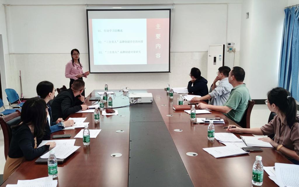 研讨会上,黄月圆做了题为“行动学习+‘三全育人’品牌创建”的专题报告。她从行动学习法概述、“三全育人”品牌创建存在的问题和“三全育人”品牌创建对策研究等三个方面展开讲解,重点强调了品牌的重要性,要善于借鉴“品牌”理念,探索富有时代性和创造性的“三全育人”工作机制与方法,提升工作的科学性、针对性、开放性和实效性;希望全体教职工在工作中要勇于担当、善于担当,群策群力推动学院“三全育人”品牌创建。秦芳详细解读了《全区高校“三全育人”综合改革示范院系建设评分标准》,将学院“三全育人”工作对标对表,分析了工作中存在的问题和改进的方向。最后,参会人员就学院“三全育人”品牌创建进行了充分研讨,结合党团建设、教学科研、创新创业、学风管理等工作实际分享了心得体会,提出了意见和建议。头脑风暴式的讨论,为学院“三全育人”品牌创建提供了新思路,指明了新方向,找准了新对策。
