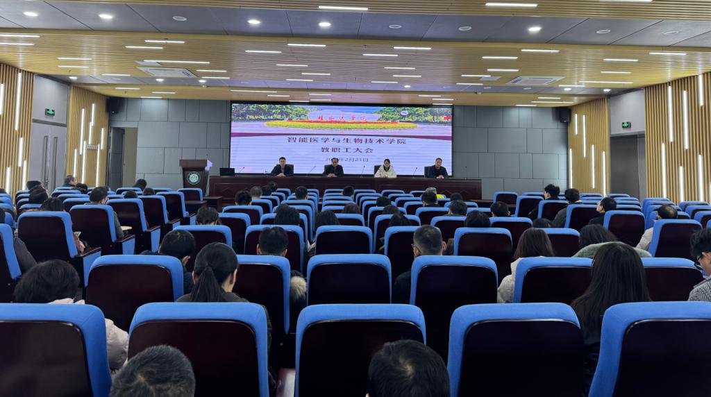 为切实保障新学期各项工作有序开展,2月21日上午,智能医学与生物技术学院在科学实验中心一楼报告厅,召开2025年春季学期开学初全体教职工大会。学院党委书记黄月圆主持会议,学院全体教职工参加会议。