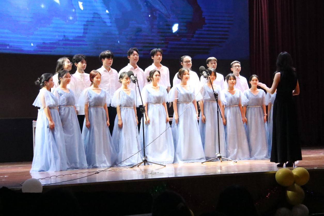 游园会拉开活动序幕,毕业生们或手持纪念牌合影留念,用镜头定格珍贵回忆,或在趣味游戏与互动环节中重温校园时光,感受浓厚的毕业氛围和校庆喜悦。晚会开场节目器乐演奏《花海》以悠扬旋律搭配绚丽舞台效果,为观众呈现了一场视听盛宴;情景剧《觉醒青年》以历史题材为背景,演绎了青年一代的责任与担当;光影剧《最好的我们》以生动的表演和璀璨的灯光将晚会推向高潮,展现了莘莘学子与母校发展同频共振的成长历程;合唱《凤凰花开的路口》引发了全场观众的共鸣,为毕业生送上了最诚挚的祝福。现场气氛温馨热烈,毕业生们深刻感受到学院的关心关爱,对母校的认同感与归属感愈发强烈。