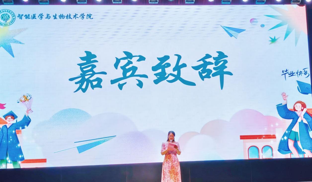 九秩芳华启新程,青春逐梦向未来。智能医学与生物技术学院于6月8日在大学生活动中心四楼报告厅举办了一年一度的毕业实习欢送晚会。学院党委书记黄月圆、党委副书记秦芳、副院长高进涛出席,毕业班辅导员、导师、班主任代表及全院学生参加了此次晚会。