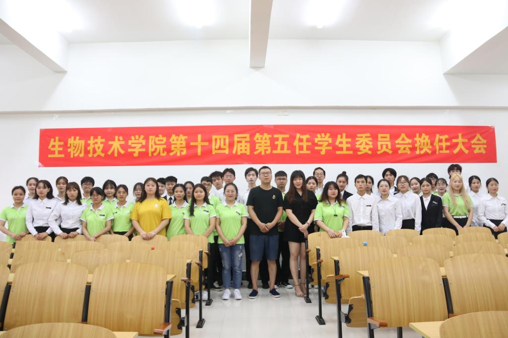 2020年6月22日,生物技术学院学生会在教学北楼203教室顺利举行第十四届学生委员会第五任委员换任大会。生物技术学院学工办主任金罗成老师,团委、学生会指导老师李思婧、校学生会代表、各二级学院学生会、生物技术学院团委、生物技术学院易班学生工作站以及生物技术学院各班级的代表们出席了会议。