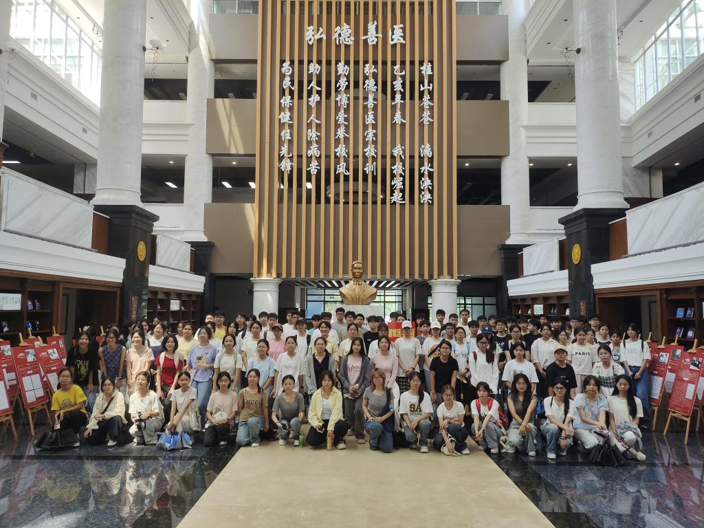 最后一站,新生们走进图书馆,参观了纸质图书区、医学馆藏区和自习空间,了解了图书分类与借阅流程,以及常用电子资源的使用方法。穿行于书香之中,许多同学表示今后要经常来图书馆“充电”。