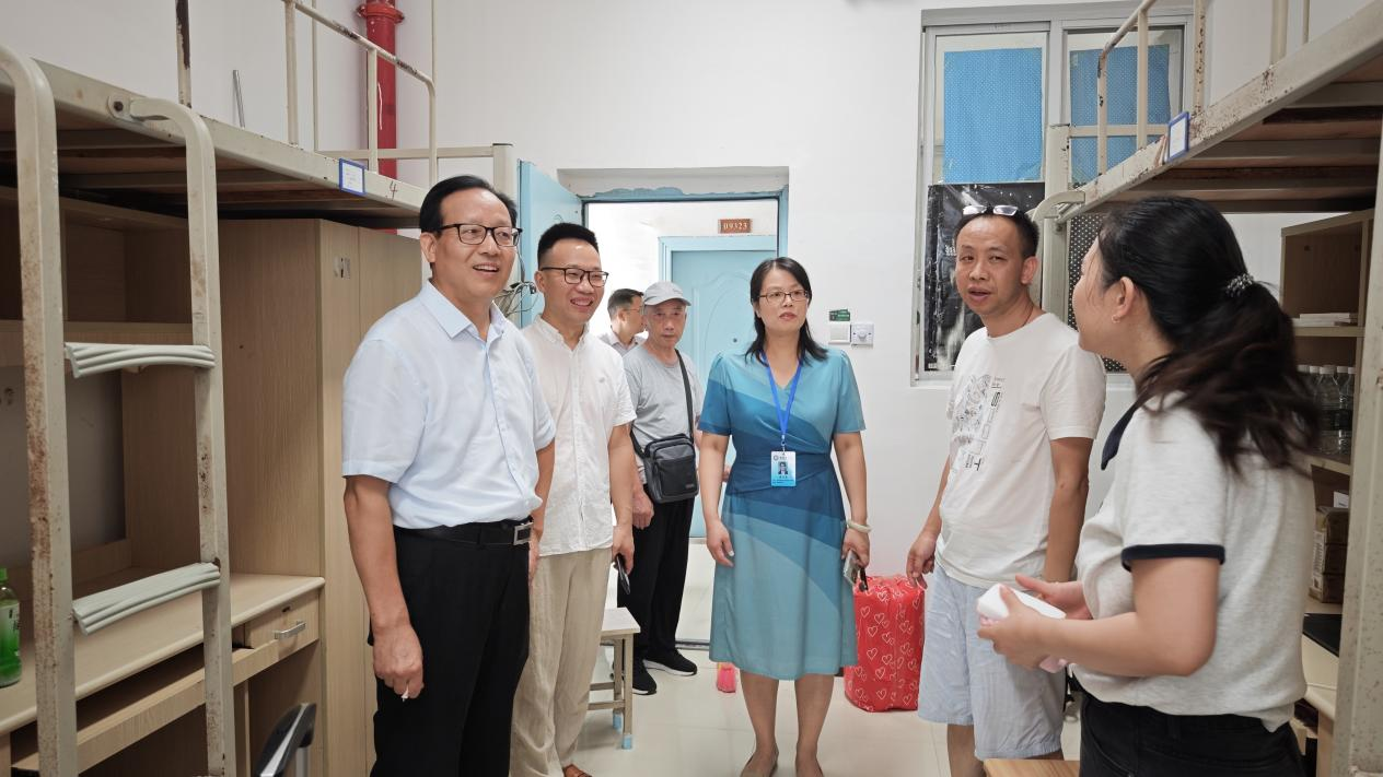 学院领导班子成员带队深入新生宿舍,走访慰问新同学,细致察看宿舍设施,与新生及家长亲切交流,详细了解适应情况,并现场协调解决实际问题。