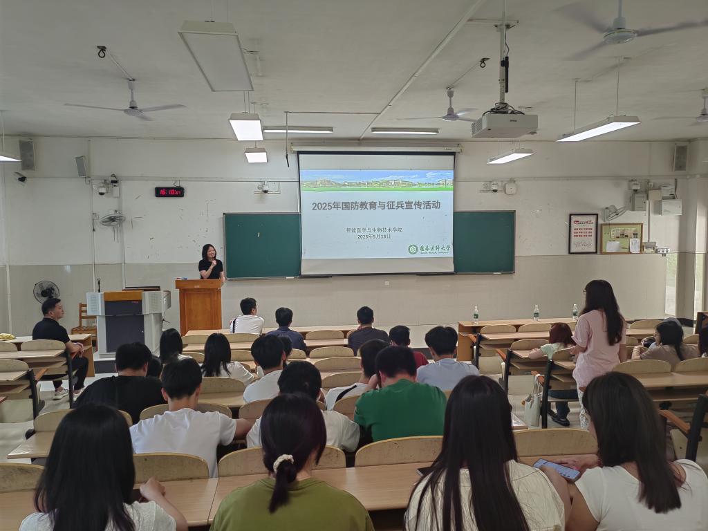 为扎实推进国防教育走深走实,激发青年学生参军报国热情,智能医学与生物技术学院于5月13日下午在临桂校区教学南楼103教室开展国防教育暨征兵宣传动员活动。