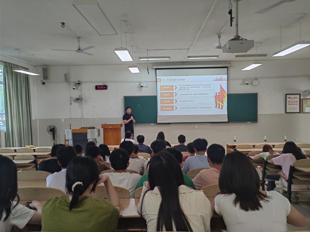 学校征兵工作站石兴镇结合工作实际,对教育部印发的《高校学生应征入伍优惠政策摘编》(2025年版)进行了详细解读。他介绍了近年来桂林市及学校出台的一系列鼓励大学生应征入伍的利好政策,并重点解读了应征入伍教育资助、退役后升学复学政策、就业服务保障以及在军队选取军士、提干晋升、职业发展路径等激励政策,帮助同学们消除后顾之忧,鼓励同学们积极应征报名投身军营。