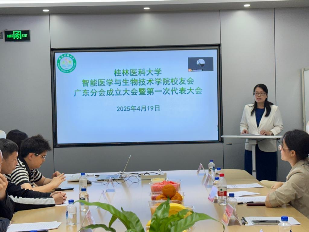 4月19日,桂林医科大学智能医学与生物技术学院校友会广东分会成立大会暨第一次会员代表大会在深圳市宝安区新安街道龙光世纪大厦会议室举行。智能医学与生物技术学院党委书记黄月圆出席,与在粤校友代表、行业嘉宾及筹备组成员齐聚一堂,共同见证这一重要时刻。