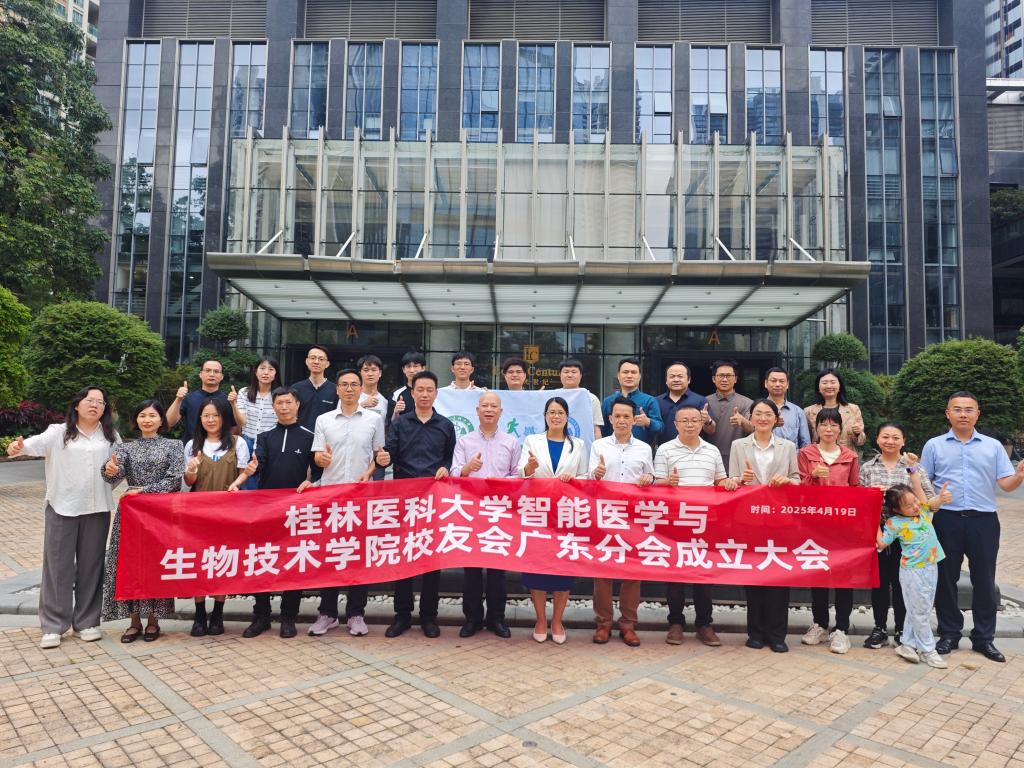 智能医学与生物技术学院校友会广东分会成立大会在热烈、温馨的氛围中圆满落幕。与会人员同唱桂林医科大学校歌,合影留念。大会不仅联络了校友感情,更以创新为帆,合作为桨,扬起协同发展、共建共享的时代风帆,开启了校友与母校携手奋进、合作共赢的崭新篇章。