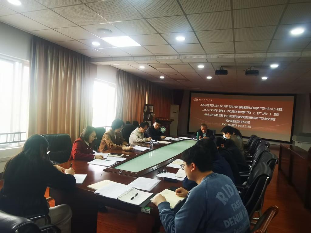3月31日下午,马克思主义学院党委理论学习中心组2026年第1次集中学习(扩大)暨树立和践行正确政绩观学习教育专题读书班在临桂校区弘义楼316室顺利举行。学院党委委员、专职组织员、党支部书记及科室负责人参加学习,校党委副书记、学院党委书记陈旭主持会议并作讲话。