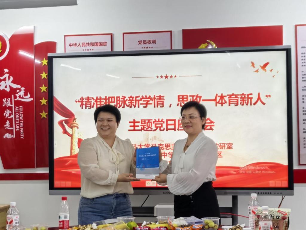 主题党日活动采用学情调研座谈会的形式,重点围绕新高考改革背景下原理课教学的学情变化展开研讨。活动伊始,刘越能副校长为本次调研座谈会致辞。随后,初中、高中政治备课组组长分别介绍了本学段与原理课教学衔接相关的中学授课内容与教学安排。在交流环节中,双方党支部分享各自在推动党建与业务深度融合方面的建设经验。最后,与会教师围绕中学与大学思政课的教学特点、学生学情变化、价值引领方式等议题进行深入交流。活动期间,原理教研室党支部还向桂林市第十八中学的与会代表赠送了专业书籍,为双方今后持续开展思政课教学经验交流奠定良好基础。