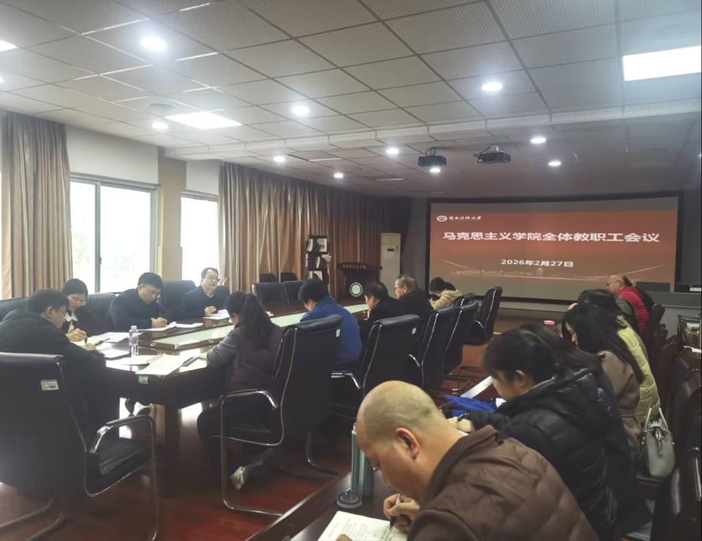 2月27日下午,马克思主义学院在临桂校区弘义楼316会议室召开新学期工作会议,学院院长吕卫华主持,全院教职工参加。