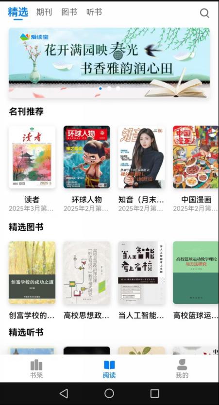 爱读宝是中国邮政开发的一体化报刊数字化阅读系统,资源有专业期刊(原貌全文)、大众期刊(原貌全文)、电子书、听书等,是专为公共文化领域以及高校图书馆打造的数字阅读系统。资源涵盖3500种高清优质正版的期刊以及丰富的图书、听书资源,资源类型包含学报类、理工类、师范类、医学类、农业类,文学类、心理学、体育类等题材外,同时还有行业、国家政策等题材的资源等
