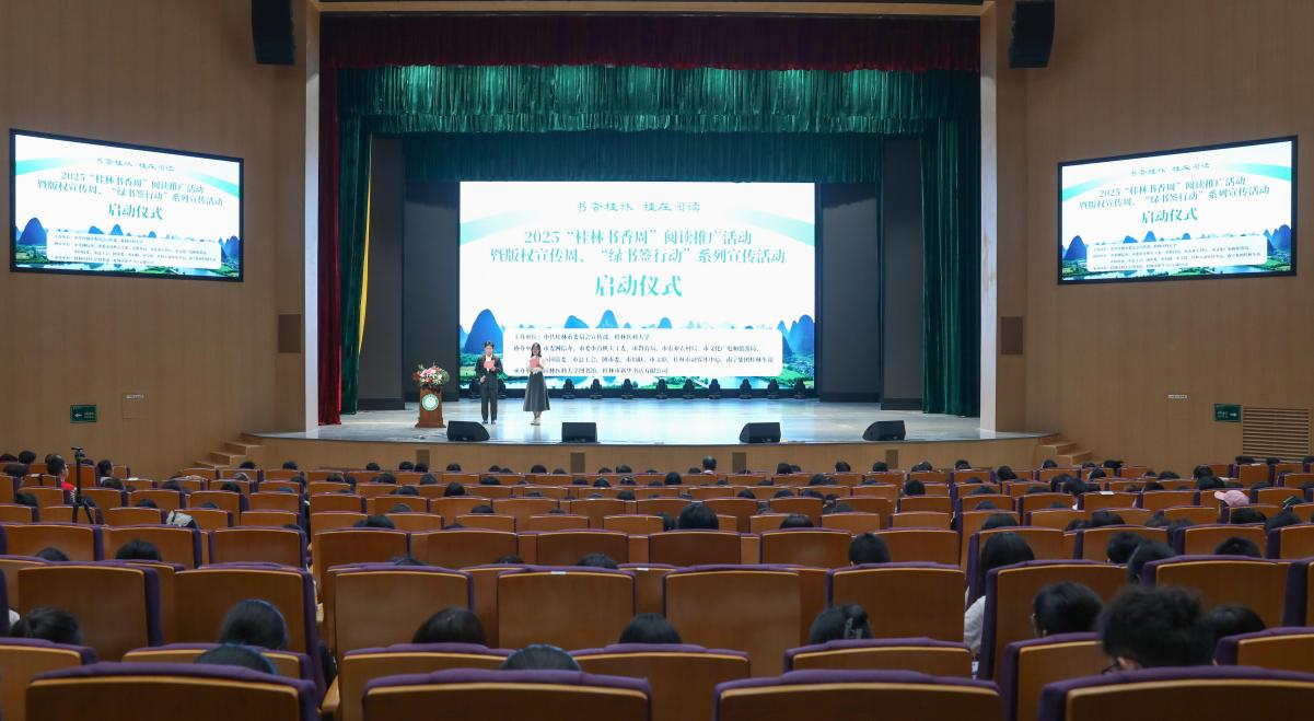 4月22日下午,在第30个世界读书日到来之际,以“书香桂林 桂在阅读”为主题的2025“桂林书香周”阅读推广活动暨版权宣传周、“绿书签行动”系列宣传活动启动仪式在我校艺术中心举行。桂林市委常委、宣传部部长李军,我校党委常委、副校长李清华出席启动仪式。