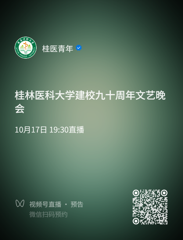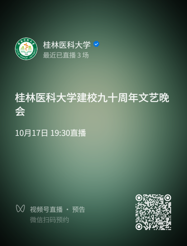 直播分会场:学校在桂林医科大学、桂医青年微信视频号设置网络直播,未能到场的师生校友可通过网络直播观看晚会。