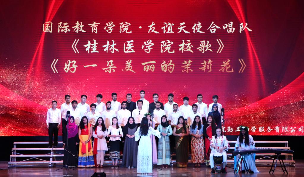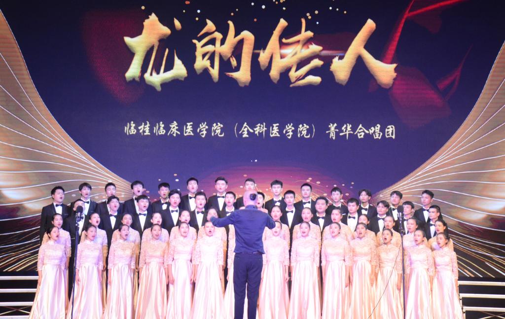 齐俊斌在致辞中指出,青年是新时代的生力军,是民族复兴的中坚力量。希望同学们在用歌声讴歌祖国、赞美桂医,同时要不忘初心,牢记使命,始终秉承“弘德善医”的校训,恪守“为人类身心健康奋斗终身”的誓言,紧跟时代发展步伐,为医学事业添砖加瓦。