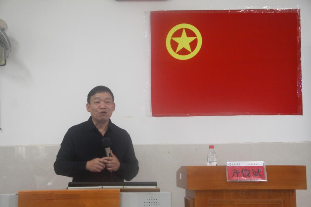 齐俊斌用一个个鲜活生动的例子,饱含哲理但又不乏幽默诙谐的话语和同学们分享了他的学习和工作经历,勉励大家不要辜负这个伟大的时代,要珍惜新时代为我们提供的广阔舞台,求真学问,练就真本领。团课结束后,同学们纷纷表示,作为学生骨干,我们要树立良好形象,全心全意为同学们服务,敢于批评和自我批评,积极传播正能量,为学校各项工作的开展贡献青春力量。