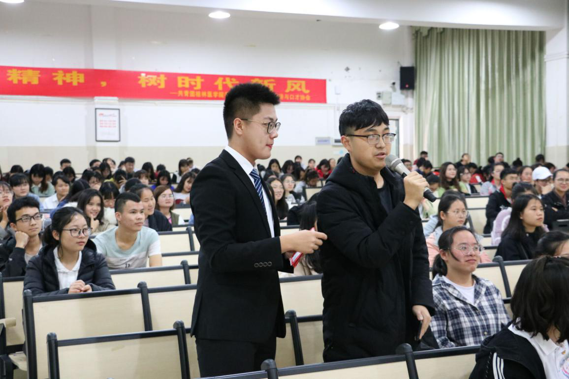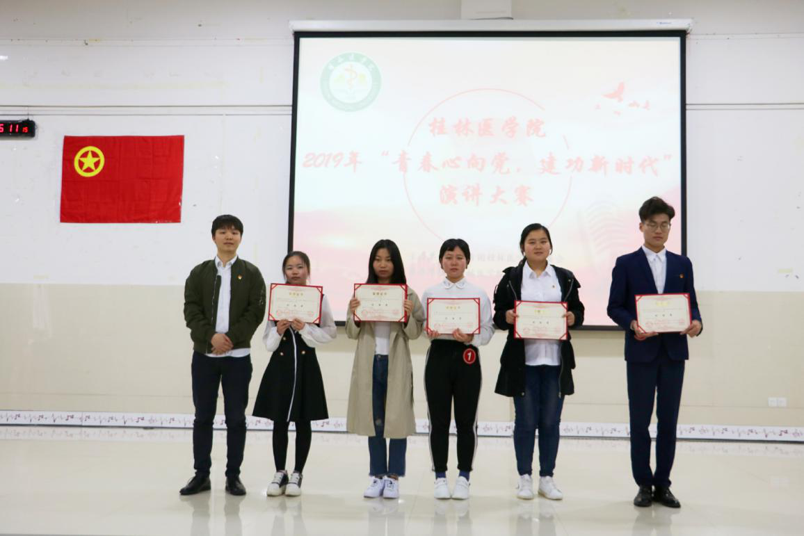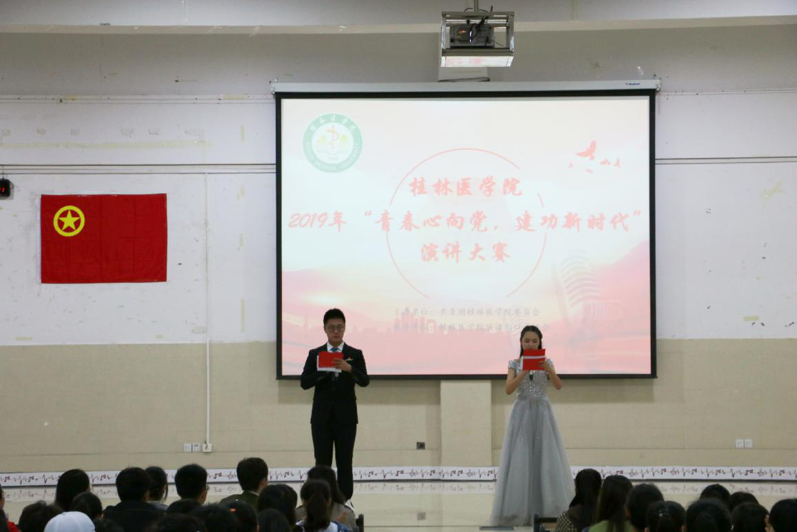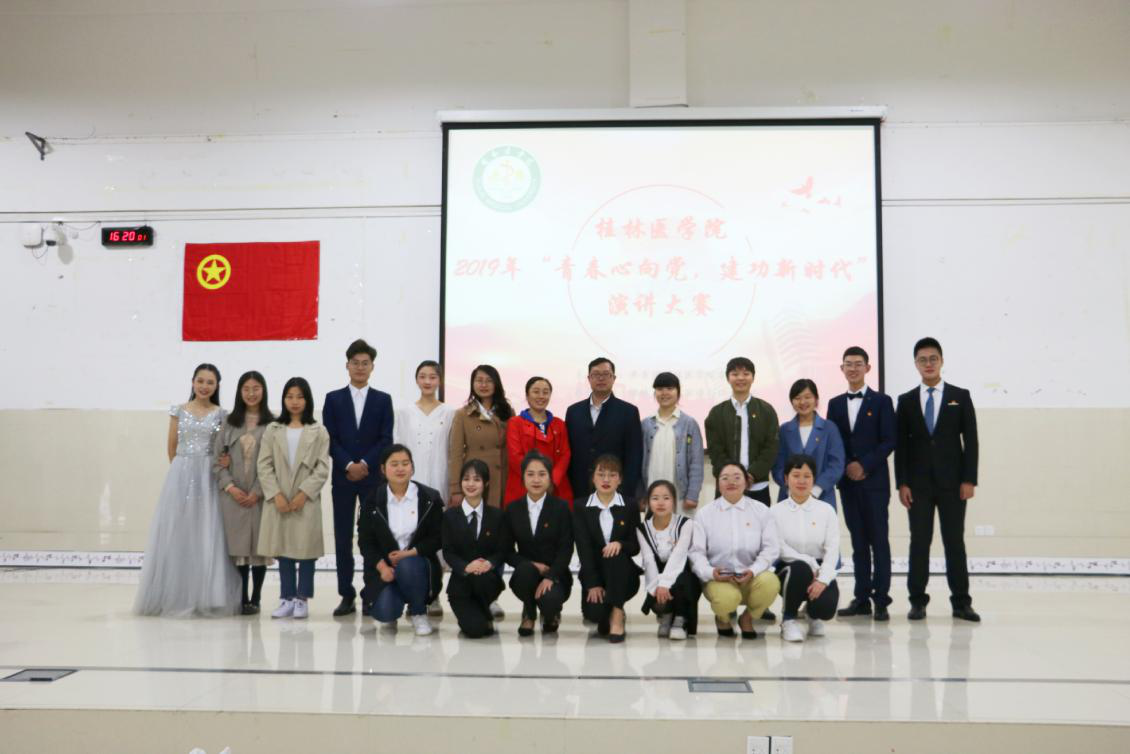 为纪念五四运动100周年,提升当代大学生对五四精神的认识,引导广大青年深入学习贯彻党的十九大精神,坚定广大青年的理想信念,共青团桂林医学院委员会、桂林医学院演讲与口才协会联合桂林航天工业学院、桂林电子科技大学信息科技学院、桂林理工大学博文管理学院、桂林师范高等专科学校,于2019年4月13日14:00在桂林医学院临桂校区教学南楼多功能报告厅举办以“青春心向党,建功新时代”为主题的纪念五四运动100周年演讲大赛决赛。本次大赛的评委为共青团桂林医学院委员会龙亮书记及五所高校的领导及老师代表。