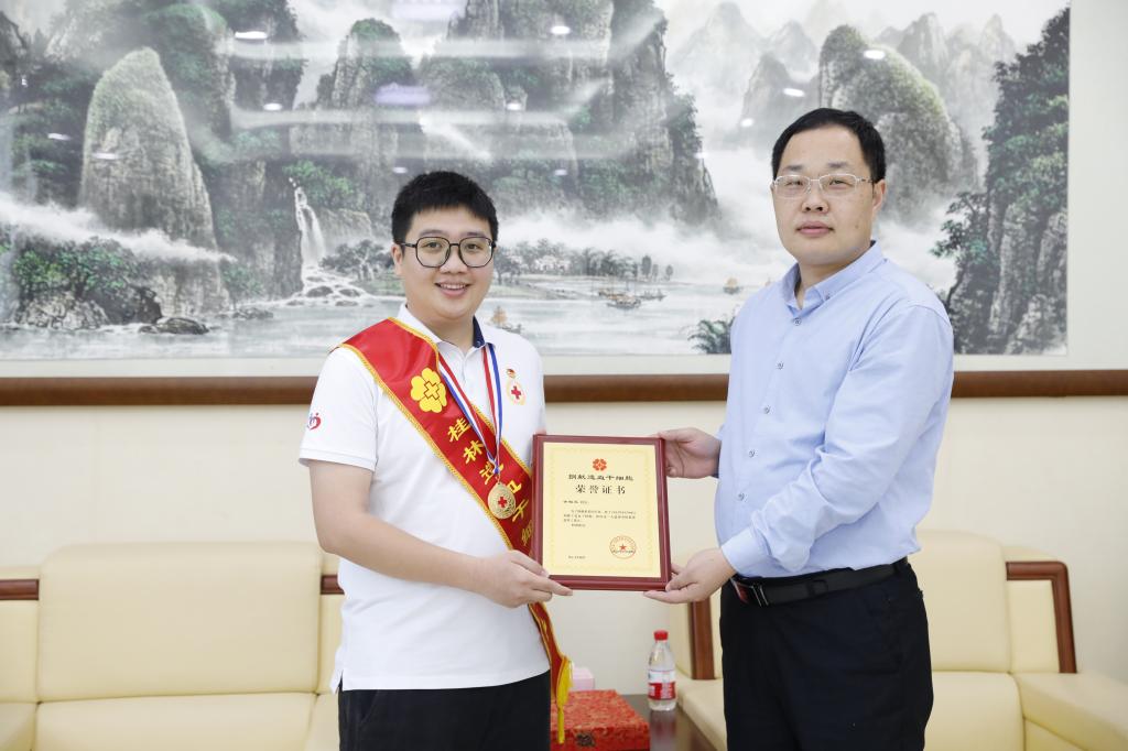 5月11日上午,校党委常委、副院长、校红十字会会长马献力在临桂校区明德楼102会议室慰问我校造血干细胞捐献者关钧元同学。校党委宣传部、学工部、校团委及公共卫生学院负责人陪同慰问。