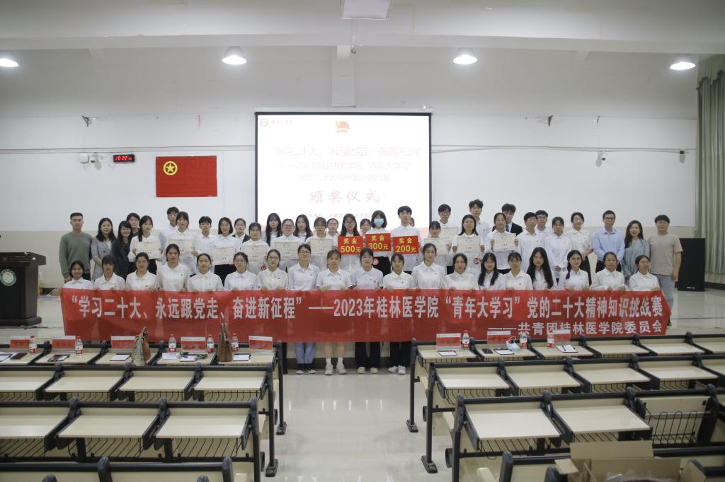 为贯彻落实党的二十大精神,更好团结引领广大桂医青年积极投身学校发展建设,5月23日晚上,我校在临桂校区举办“学习二十大、永远跟党走、奋进新征程”——2023年桂林医学院“青年大学习”党的二十大精神知识挑战赛,校团委团干、二级学院团委负责人及学生代表参加本次活动。