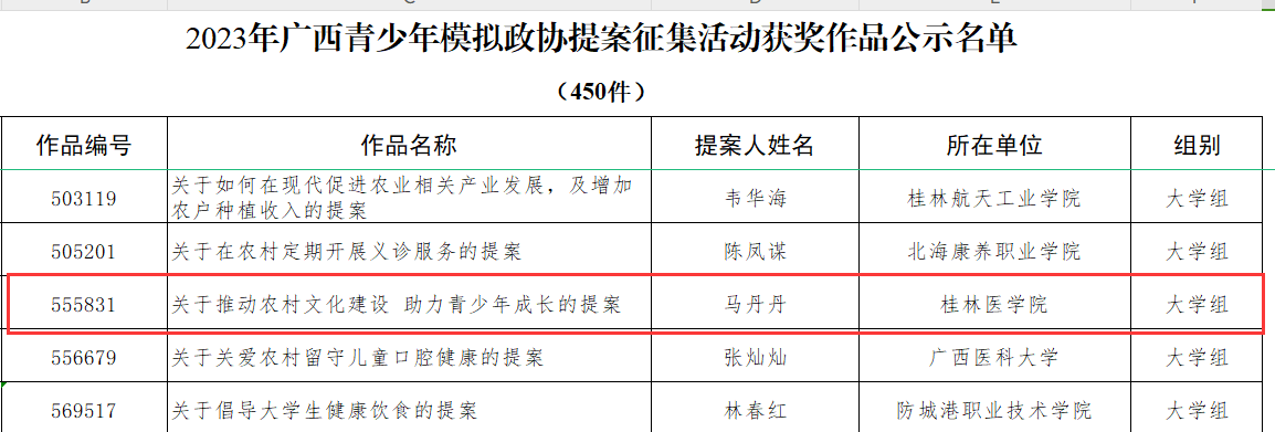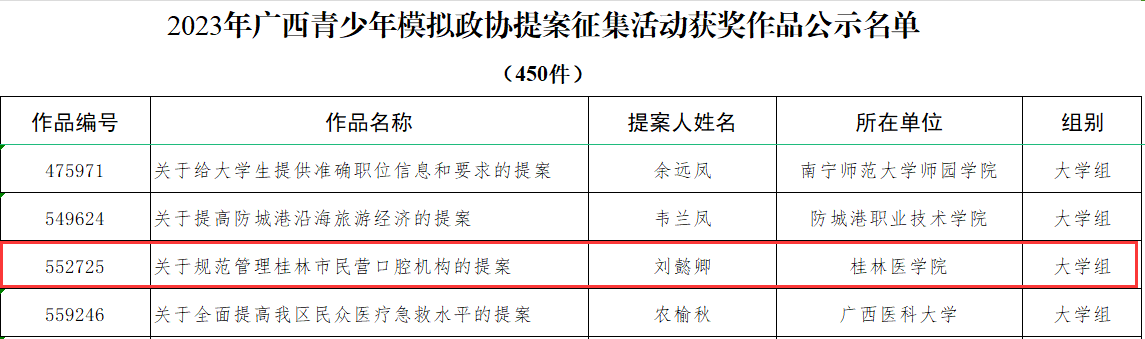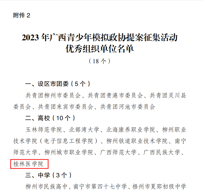 近日,由共青团广西区委、自治区政协办公厅、自治区教育厅、广西学联联合开展的2023年广西青少年模拟政协提案征集活动获奖名单公布。据悉,本次活动共征集到提案作品17289份,最终评选出自治区级优秀作品450 份。我校在本次活动中获评“优秀组织单位”,4份作品获评“优秀提案作品”。