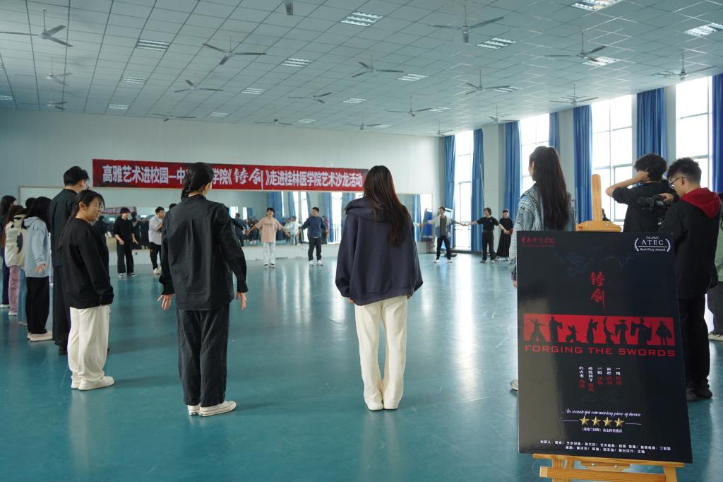 为深入学习贯彻党的二十届三中全会精神,推进学校美育建设,提高师生艺术修养,2024“高雅艺术进校园”系列活动——中央戏剧学院原创话剧《铸剑》走进桂林医学院,10月30日晚在桂林医学院艺术中心上演,学校师生代表共800余人观演。