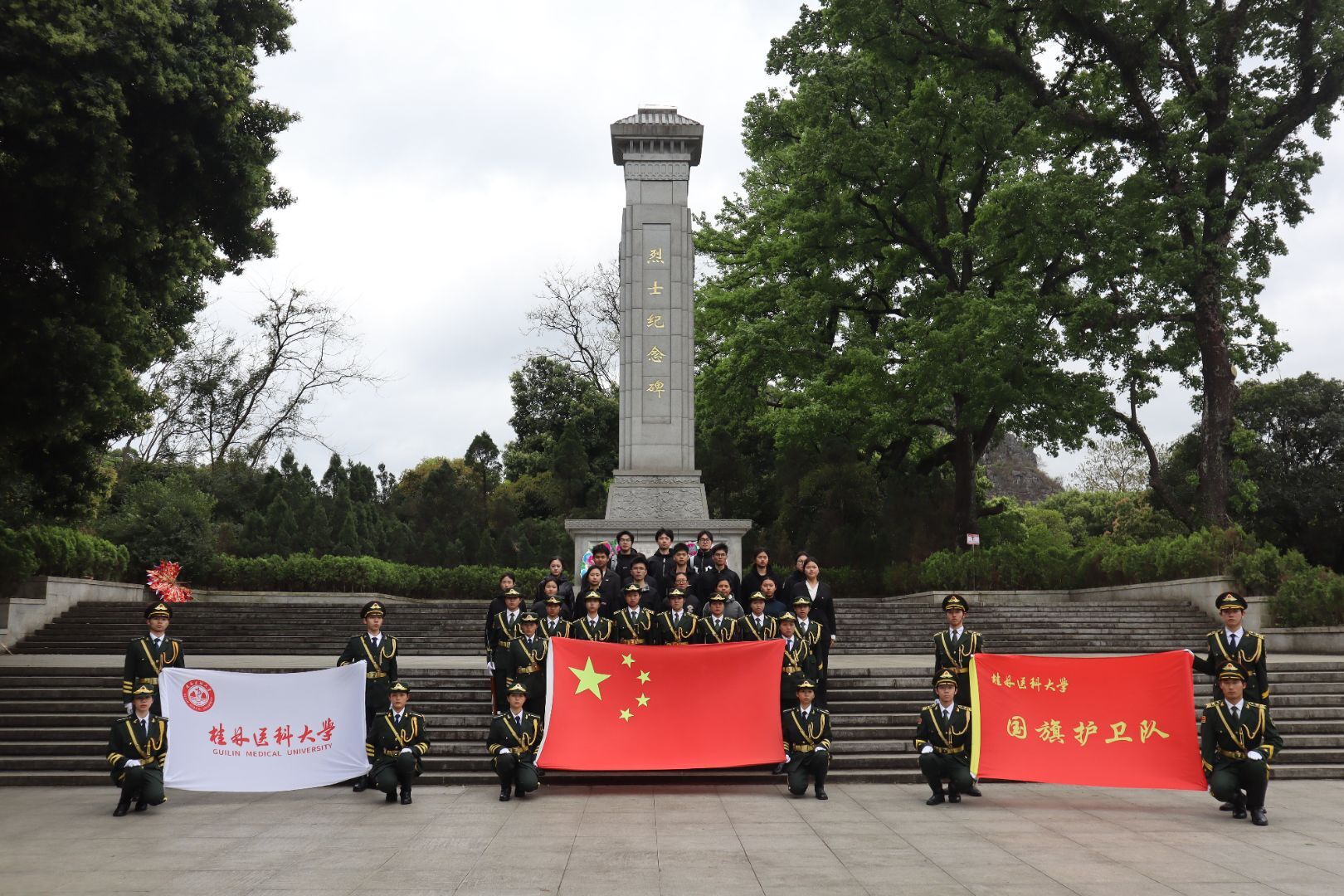 为缅怀革命先烈,弘扬爱国主义精神。清明节前夕,桂林医科大学国旗护卫队全体队员前往桂林市七星公园烈士纪念碑开展“清明追思祭英烈,红色精神永传承”清明祭英烈活动,以庄严的仪式表达对革命先辈的崇高敬意。