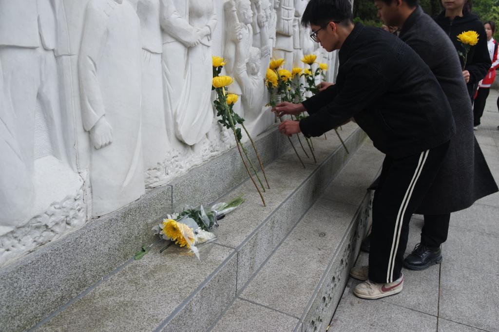 在庄严肃穆的烈士纪念碑前,全体队员整齐排列,神情肃穆,举行出旗仪式并敬献花圈。随后,集体默哀、鞠躬,献花、瞻仰纪念碑,静静地追思与缅怀革命先烈抛头颅、洒热血的伟大革命精神。队员代表的主题演讲,声情并茂地将队员们的思绪带回了那段峥嵘岁月,勉励青年学生勿忘历史接续奋斗。