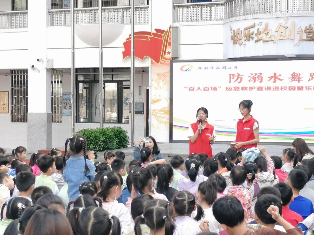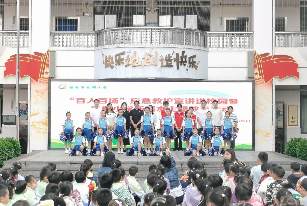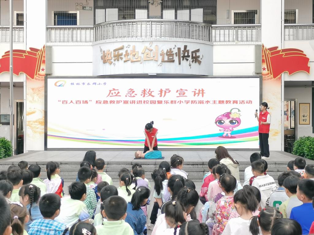 5月26日,桂林医科大学红十字会“微光成炬”生命教育宣讲团走进桂林市乐群小学开展应急救护生命教育宣讲活动。桂林医科大学团委、团市委、秀峰区教育局相关负责人出席活动。