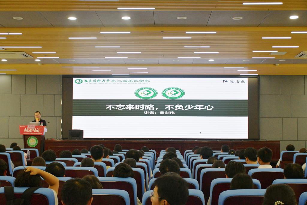 9月29日,由校团委主办、校学生会协办的“校友讲坛”——桂林医科大学建校90周年系列主题讲座第5期在临桂校区科学实验中心报告厅举行。我校2007级校友、第二附属医院副主任医师黄剑伟受邀为师生作主题讲座。