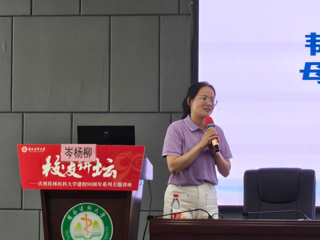 10月10日,由校团委主办、校学生会协办的“校友讲坛”——桂林医科大学建校90周年系列主题讲座第6期在临桂校区科学实验中心报告厅举行。我校2004届校友、学校第一附属医院新生儿科副主任护师岑杨柳受邀为师生作主题讲座。
