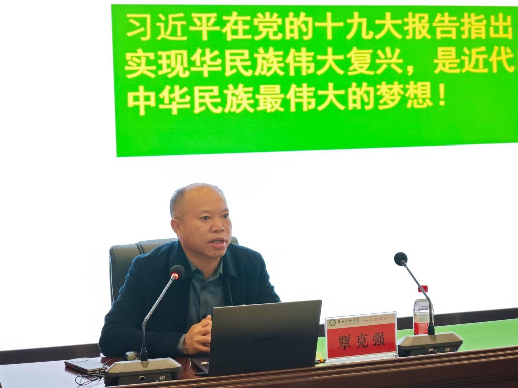 会后,覃克强以《深学笃行,在民族复兴伟业中绽放青春担当》为题讲授第一课。他系统解读了党的二十届四中全会精神与“十五五”规划核心内容,引导青年学子志存高远、锤炼本领,并提出四点希望:要志存高远、坚定理想信念,潜心学习、掌握过硬本领,胸怀祖国、学以致用,磨炼意志、担当重任。