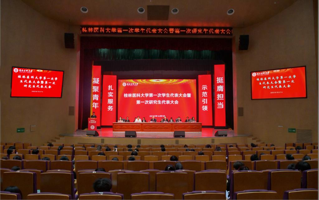 12月7日,桂林医科大学第一次学生代表大会暨第一次研究生代表大会在临桂校区大学生艺术中心召开。党委常委、副校长覃克强,学生工作部(处)、研究生工作部和校团委相关部门负责人及教师代表、校内外学生代表共计两百余人一同出席了本次大会。