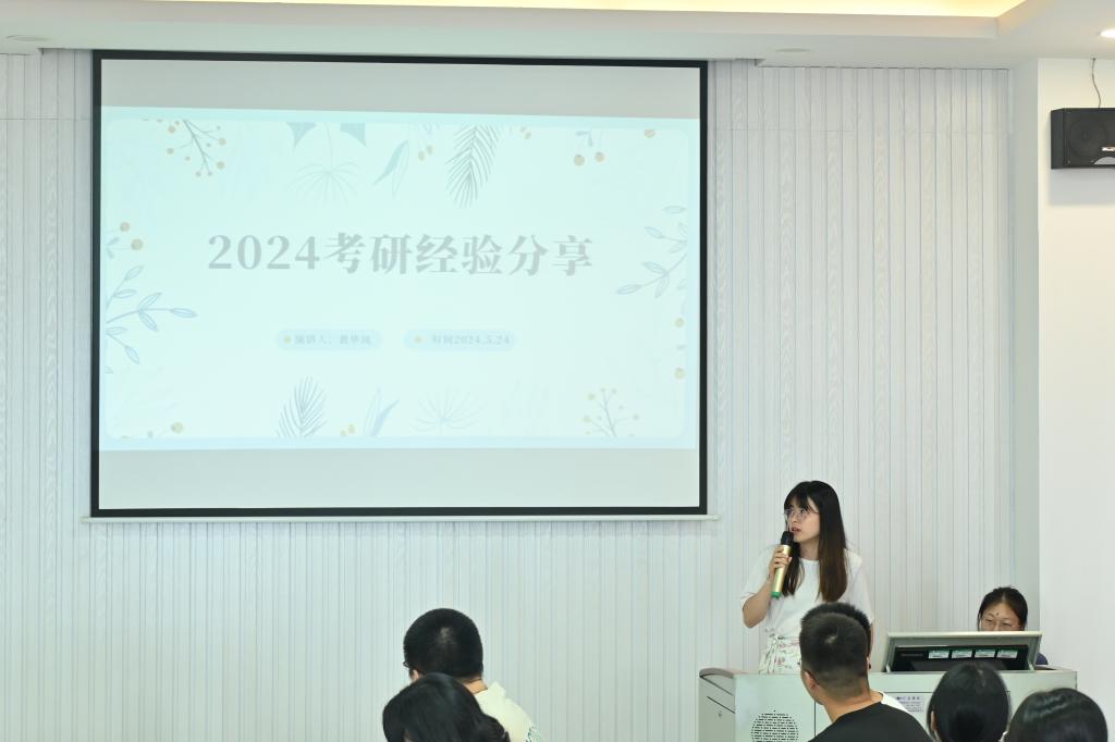 交流会邀请到了5名今年顺利考上研究生的同学进行分享。他们通过PPT分享和座谈交流的形式帮助同学们提前了解考研相关知识、帮助树立考研目标,并就如何提高备考效率和如何做好个人备考过程的心理调节等问题进行了深入的交流,交流会氛围轻松热烈。