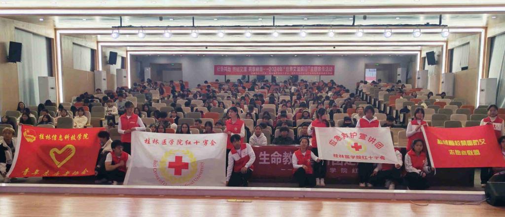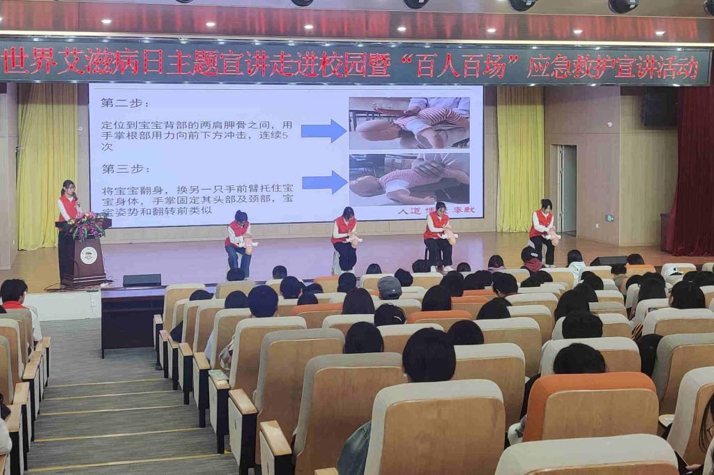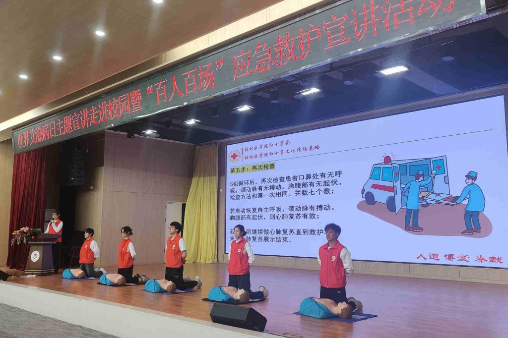 11月26日,桂林医学院红十字会赴桂林信息科技学院开展生命教育主题宣教活动,对现场300余名师生进行禁毒防艾、应急救护宣教及培训。