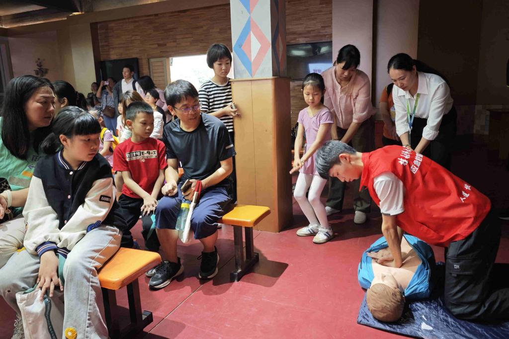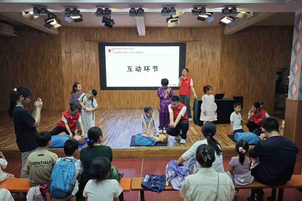 培训过程中,桂林医科大红十字会志愿者结合校园实际场景,围绕心肺复苏(CPR)、气道异物梗阻“海姆立克急救法”展开了系统讲解,通过生动有趣的知识讲解和互动问答,向青少年详细介绍了急救知识,在讲解心肺复苏时,特别强调了“黄金4分钟”在急救中的时效性,引导学生们树立起“生命至上 科学施救”的急救理念。针对“海姆立克急救法”,志愿者们通过手势分解动作要领,让学生们快速掌握了“腹部冲击法”,在讲解气道异物梗阻急救操作流程、动作要点及施救注意事项时,借助专业的人体模型,生动形象地演示了胸外按压、开放气道、人工呼吸等心肺复苏各个环节的操作步骤与关键要点,使学生们对急救知识有了更为直观、深刻的认识。
